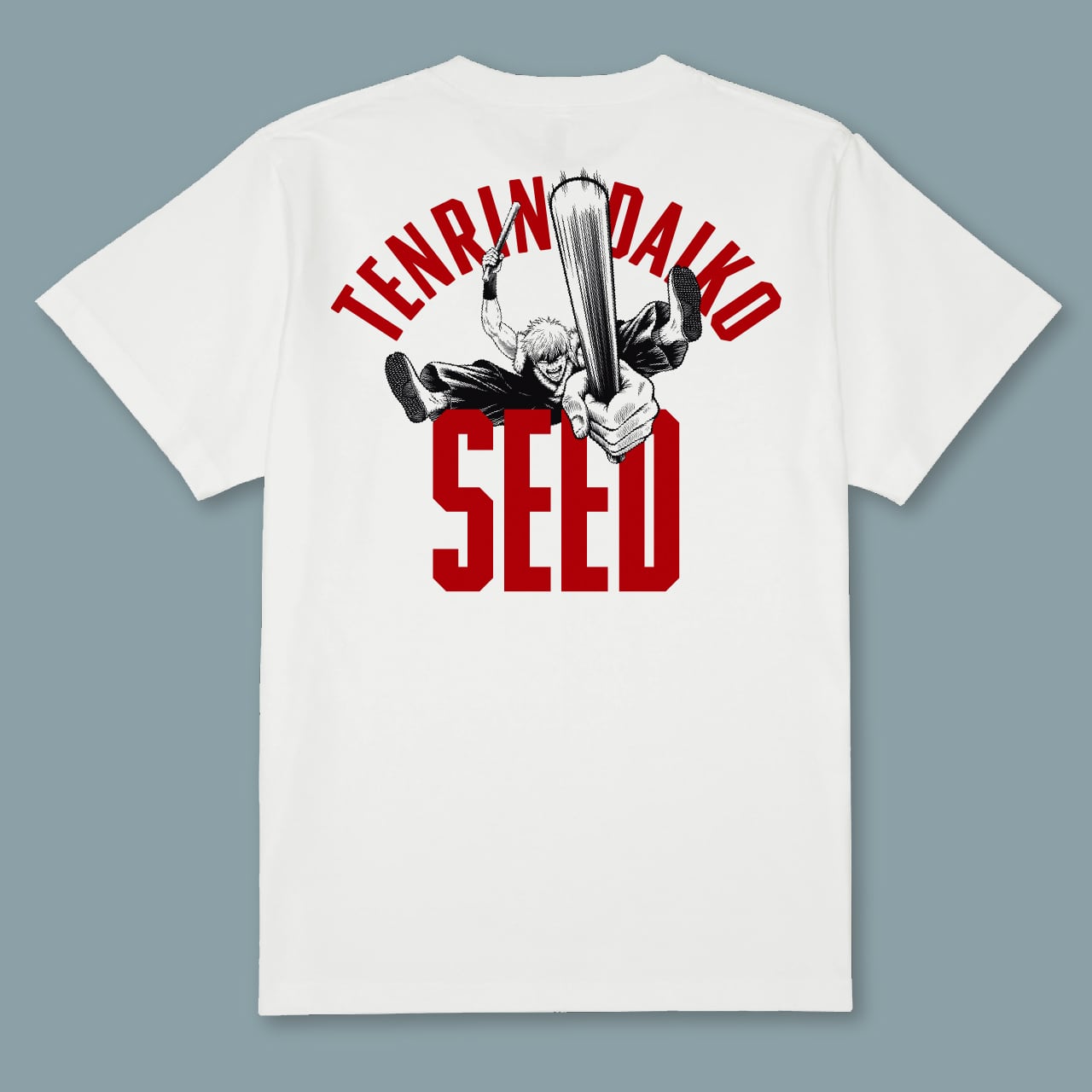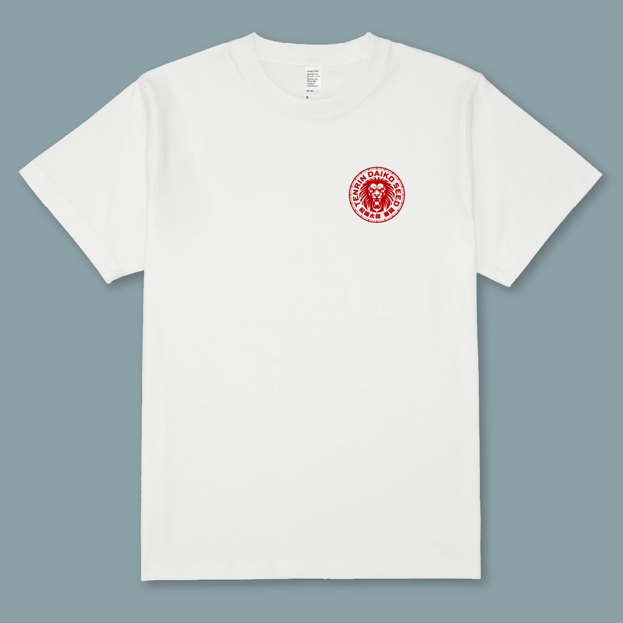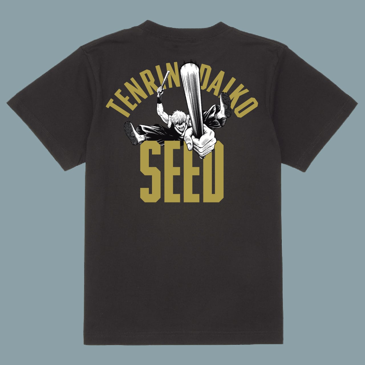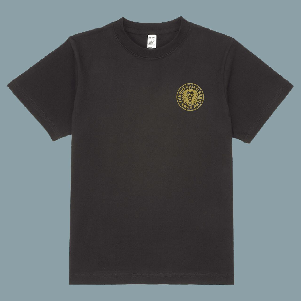 転輪太鼓の闘志みなぎる和太鼓演奏を、獅子のアイコンや和太鼓奏者の漫画イラストで表現。スポーツユニフォームを思わせるデザインで、チームとしての一体感と高揚感を生み出します。